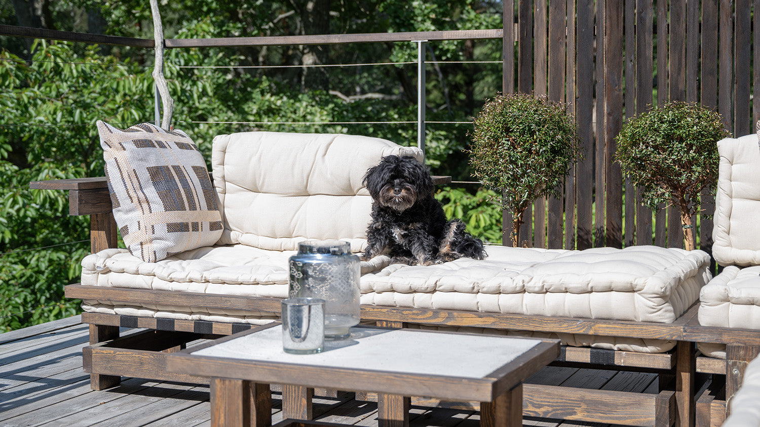 När vi skapat en mängd ytor i anslutning till vårt hus bla ett stort trädäck, en fristående Paviljong samt en rund grusad yta och försökt inreda dessa kändes allt platt, tomt, öppet och tråkigt. Testade med olika segeldukar för att skapa rum och skydd mot solstrålar men fick det inte att fungera då vatten ständigt ansamlades. Möblerna flöt ihop med omgivningen och det kändes allmänt statiskt. Frågorna hur vi i allsin dar skulle få ordning på detta och lyckas skapa olika rum, platser för olika ändamål och med atmosfär var många!